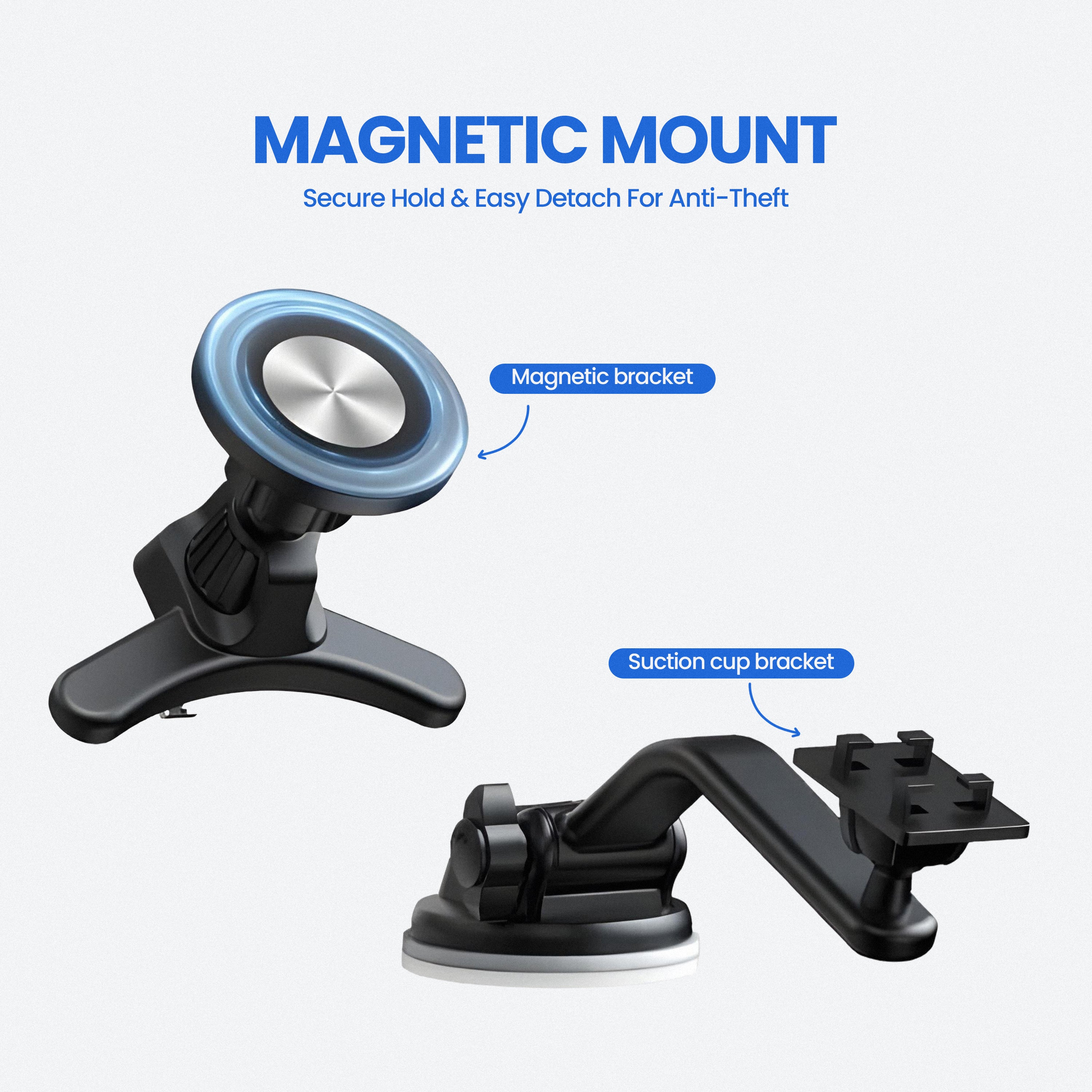 1. Stick it on your dashboard with the stand or to your windshield with the suction cup (both included).