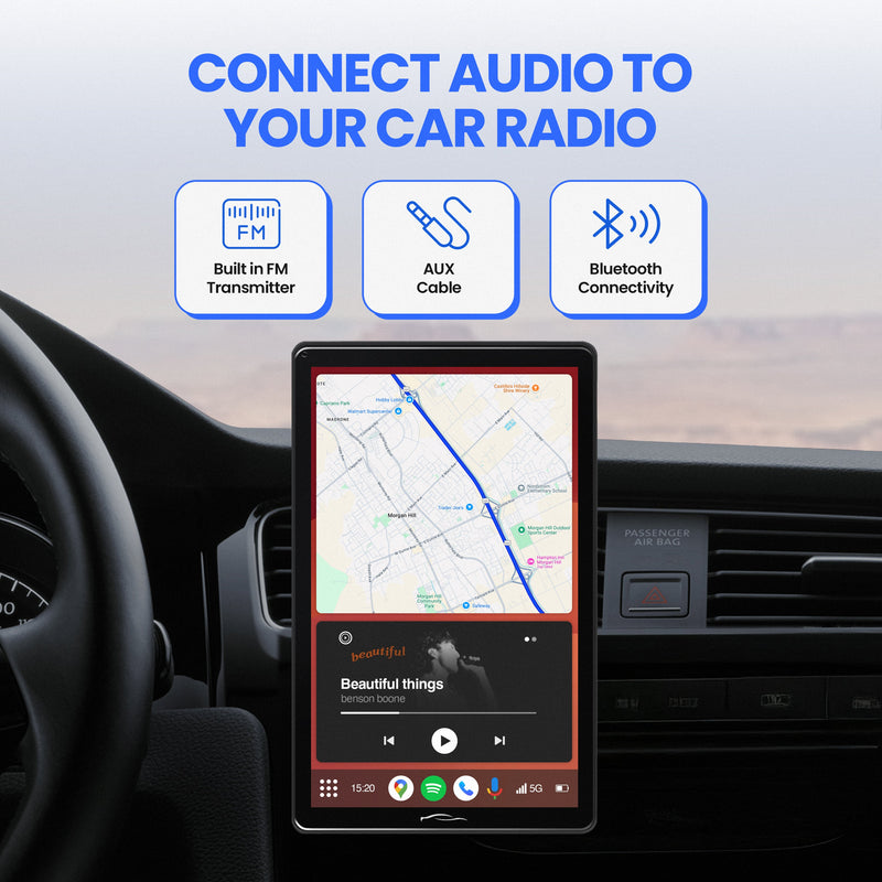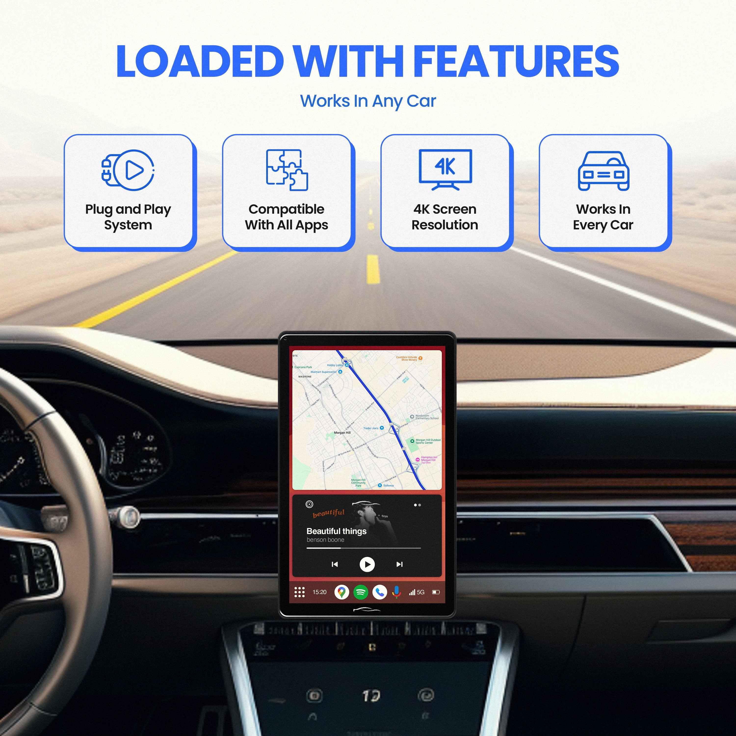 Transform your driving experience with the CarTablet Pro Max, the most advanced car screen solution that brings Apple CarPlay and Android Auto to any vehicle