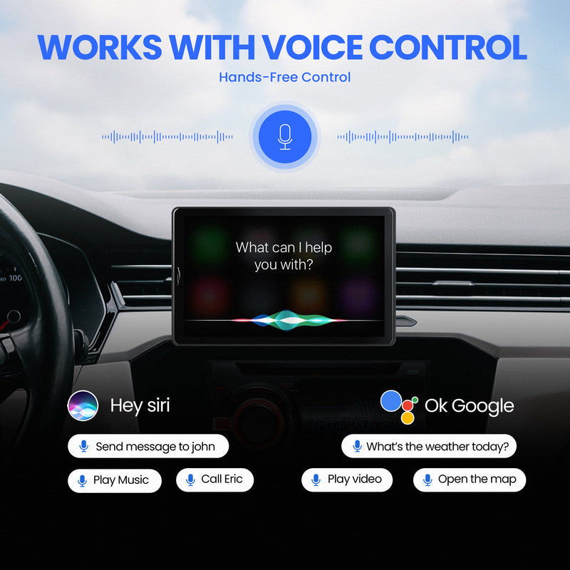 The CarTablet supports voice control via Siri, Google Assistant, and Bixby, allowing you to keep your hands on the wheel and your focus on the road while controlling navigation, calls, and entertainment.